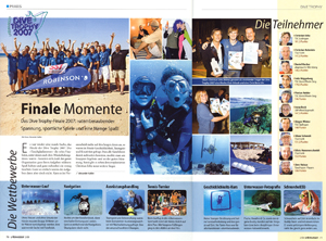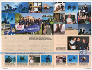 Jedem der zehn Finalisten standen am Ende der Woche die Strapazen ins Gesicht geschrieben. Große schwarze Augenringe (hinter der Sonnenbrille versteckt), raue Stimmen und weitere kleinere Ausfallerschinungen kennzeichneten die "Tauchhelden" kurz vor der Heimreise. Was war passiert? Die Kombination aus mitunter anspruchsvollen Wettkampfübungen wie dem Anlegen der Ausrüstung unter Wasser "Himmel und Hölle), einem stimmgewaltigen Auftritt...