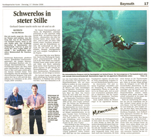 "Drei Punkte bleiben auf dem Meersesgrund - Deutsche Sporttaucher suchten ihre Besten: Der Bayreuther Gerd Gasser landete auf Platz zwei - Dive Trophy 2006"